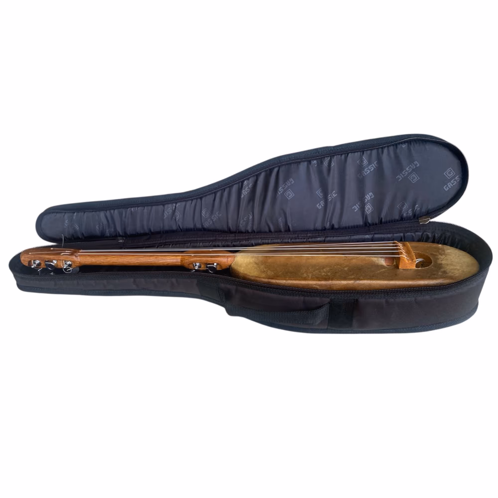 Each xalam is handcrafted by master luthier Abdoulaye Traore Diop in Dakar. He builds them with age-old techniques using carved wood, goatskin, and natural materials that resonate with warmth and depth. Every instrument has its own voice, earthy, raw, and full of life.